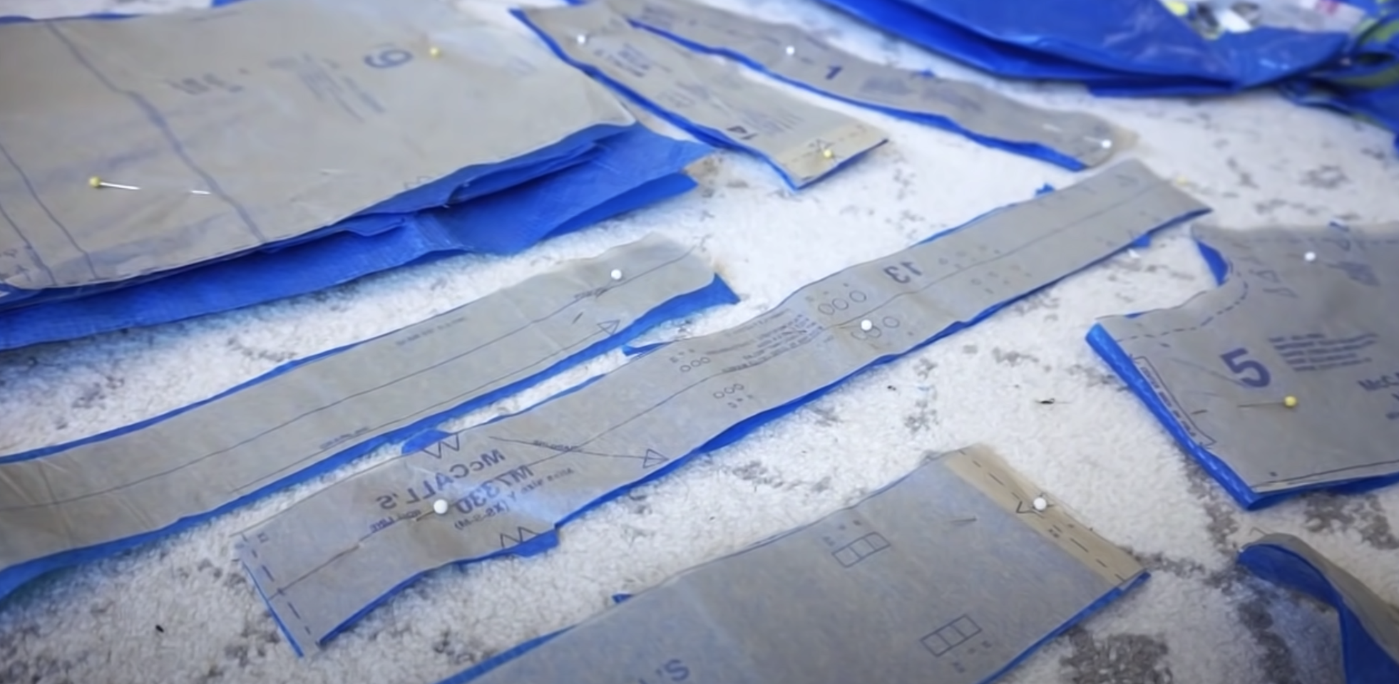 Pinning the side panels on the suit top.