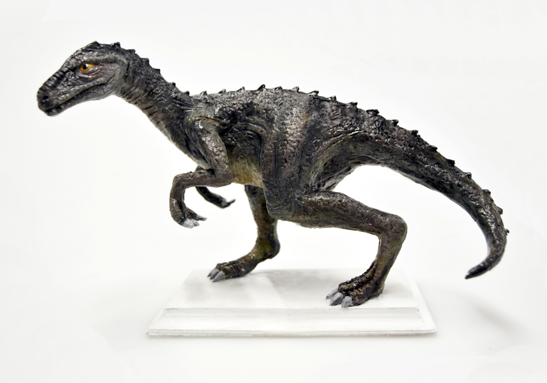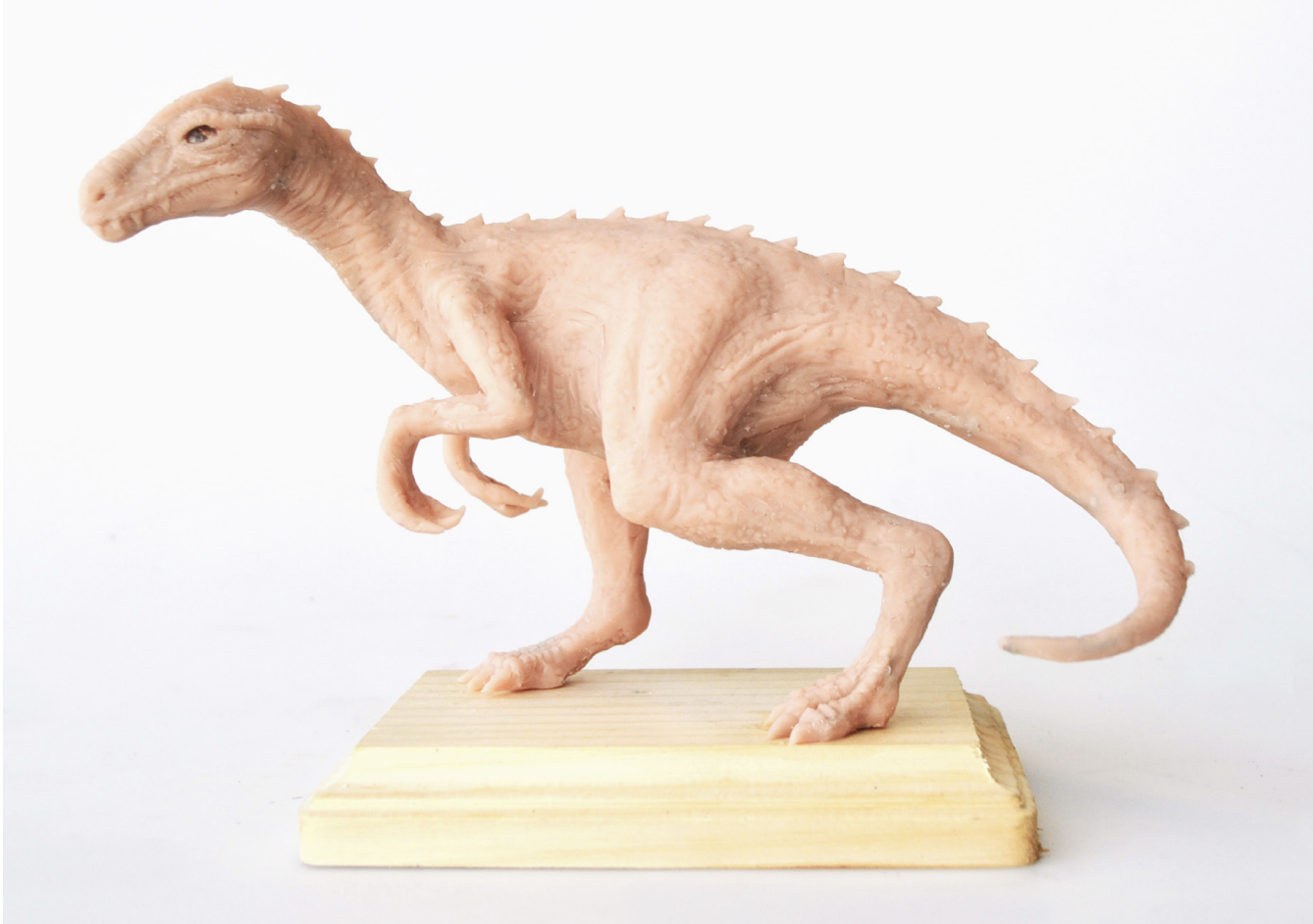 Dinosaur sculpted out of clay, using custom texture stamps. Cast in Smooth-On silicone with liquid plastic.